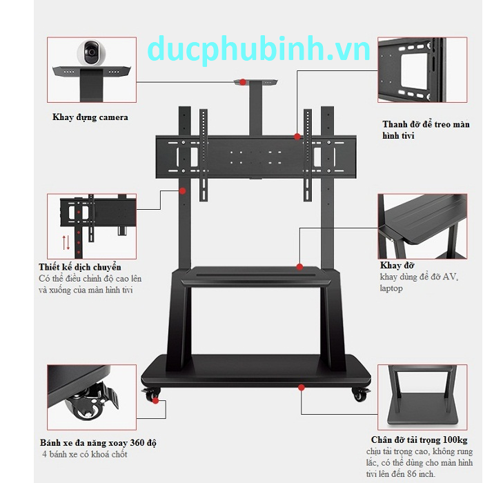 Chân đỡ di động có bánh xe phù hợp với tất cả các TiVi, Màn Hình Tương Tác, màn lcd từ: 32 inch, 42 inch, 43 inch, 48 inch, 49 inch, 50 inch, 55 inch, 58 inch, 60 inch, 65 inch, 70 inch. 86 inch