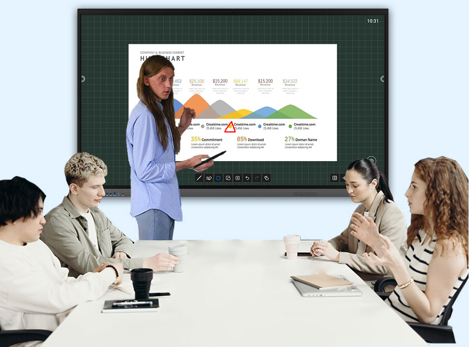 Màn hình tương tác thông minh Smart 65 LG-V1008G mới mang lại hình ảnh đẹp với cuộc sống với màn hình mạnh mẽ. Smart 65 LG-V1008G mang lại chất lượng tốt nhất của sự hợp tác, hoàn hảo cho bất kỳ lớp học hoặc phòng họp. Với phần mềm chú thích được cài đặt sẵn của nó, nó sẽ giúp học sinh, giáo viên và người thuyết trình dễ dàng hơn khi bước lên màn hình và bắt đầu viết hoặc vẽ bằng bút hoặc ngón tay. Học sinh có thể học hỏi và làm việc cùng nhau và mọi người có thể chú thích nội dung trên màn hình.